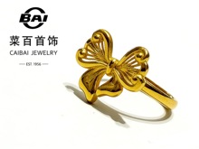 菜百首饰 黄金戒指 足金高工蝴蝶结造型戒指 活圈 计价