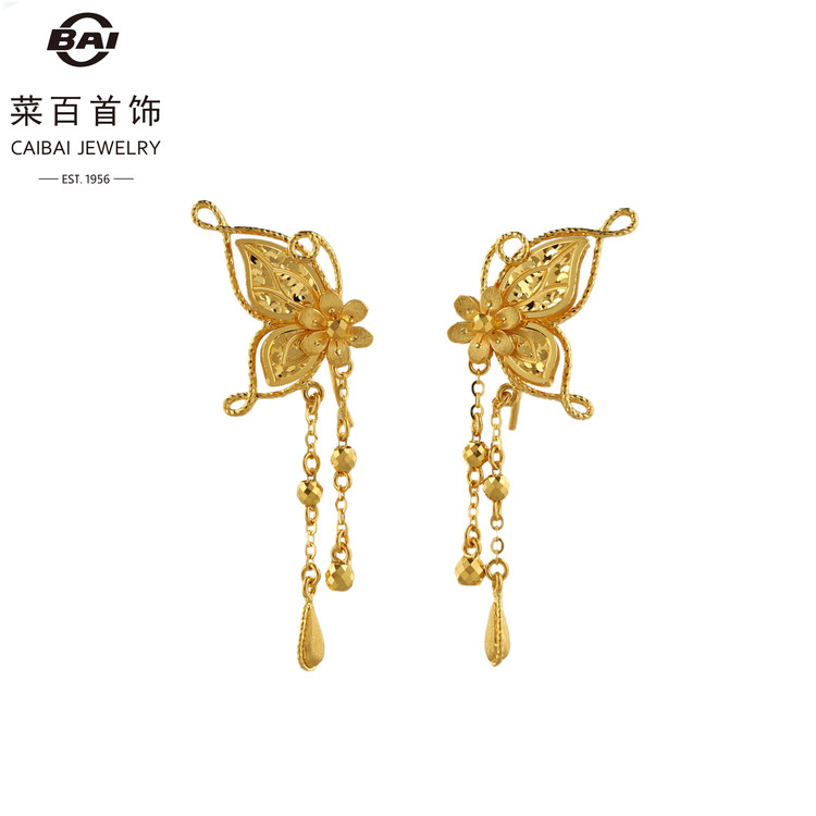 黄金饰品 > 黄金耳饰 > 耳坠 > 菜百首饰 > 菜百首饰 足金耳饰 碎碎冰蝴蝶耳坠