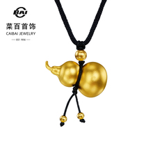 菜百首饰足金项链古法黄金国风小葫芦吊坠链编织绳葫芦项链送礼