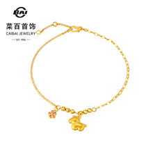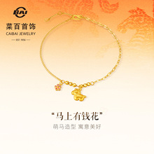 菜百足金手链国风“马上有钱花”黄金手链个性叠搭生肖马