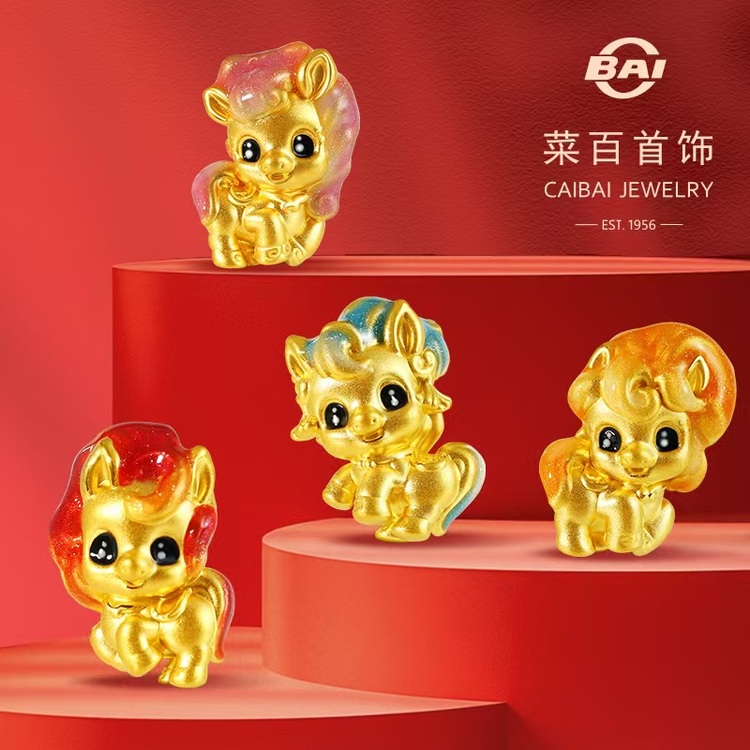 菜百首饰 黄金项坠 足金小马多多系列吊坠