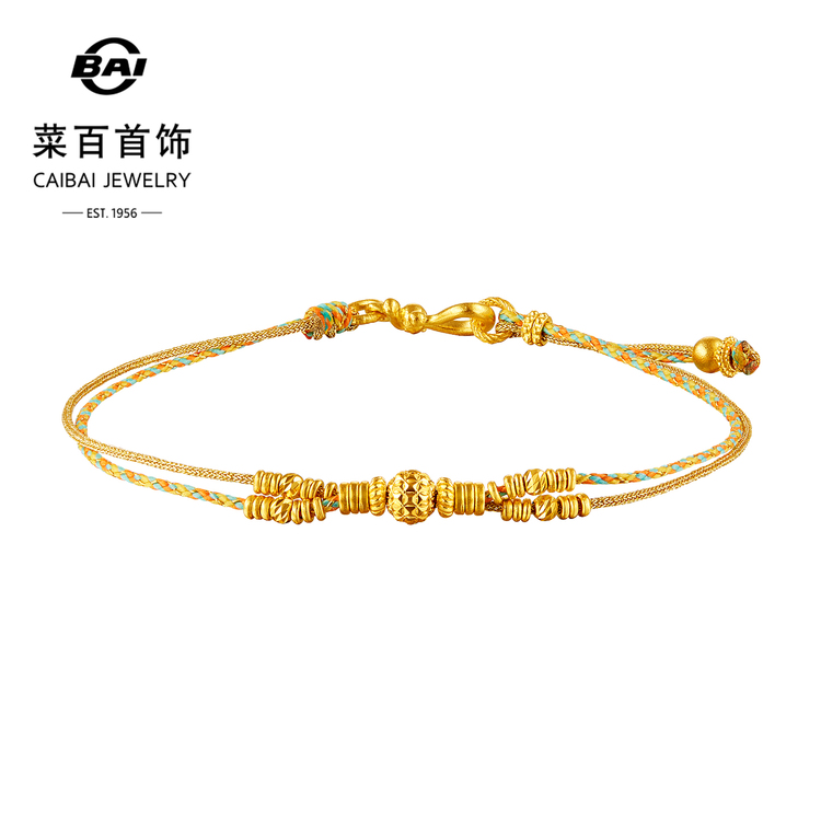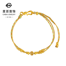 菜百首饰足金手链古法黄金鎏彩灯球编织手链国风手链送礼