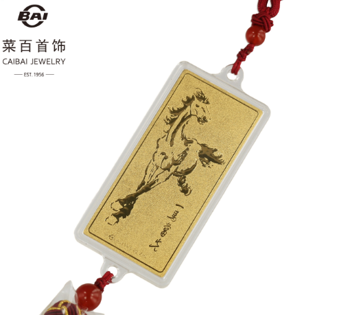 菜百首饰 足金饰品 徐悲鸿 一马当先 车挂 礼品 收藏