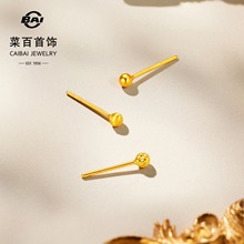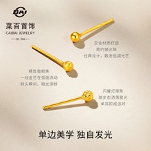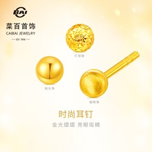 菜百足金耳饰时尚闪耀金猫眼/灯球/抛光珠耳钉叠搭耳钉送礼