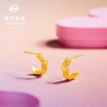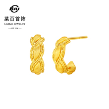 菜百首饰足金耳饰时尚闪耀金摩登复古麻花半圈耳钉耳圈送礼