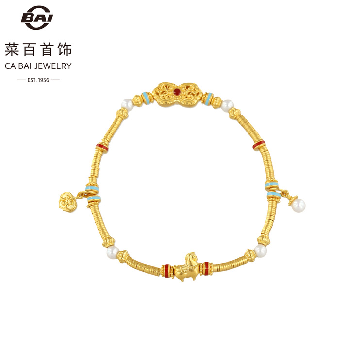 黄金饰品 > 黄金手饰 > 手链 > 菜百首饰 > 菜百首饰 足金手饰(古法镶石-珍珠-马)