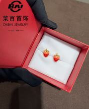 菜百首饰 足金草莓耳钉