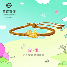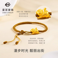菜百宠·礼系列足金猫咪编织手链黄金跑酷小猫转运珠礼物