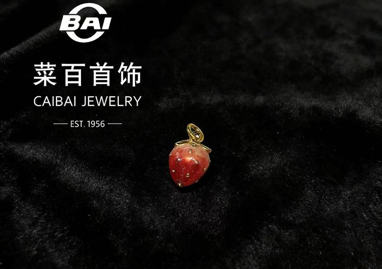 菜百首饰 黄金项坠 足金鎏彩工艺草莓吊坠