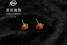 菜百首饰 足金草莓耳钉