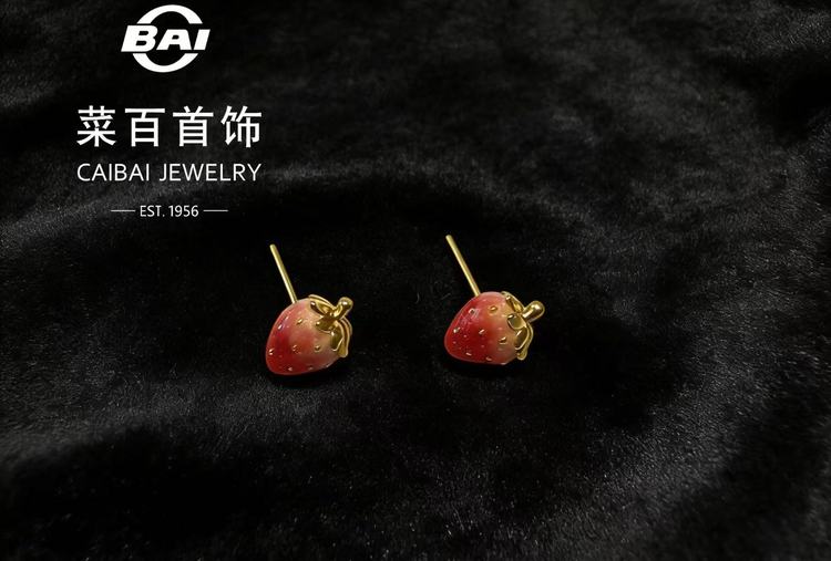 菜百首饰 足金草莓耳钉~