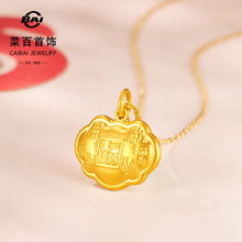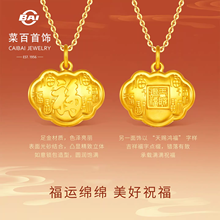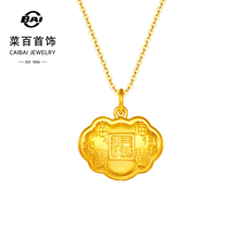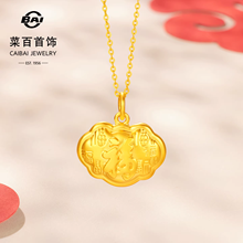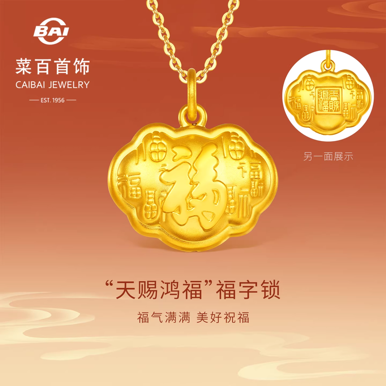 菜百足金吊坠国风“天赐鸿福”福字如意黄金锁吊坠儿童锁项坠送礼