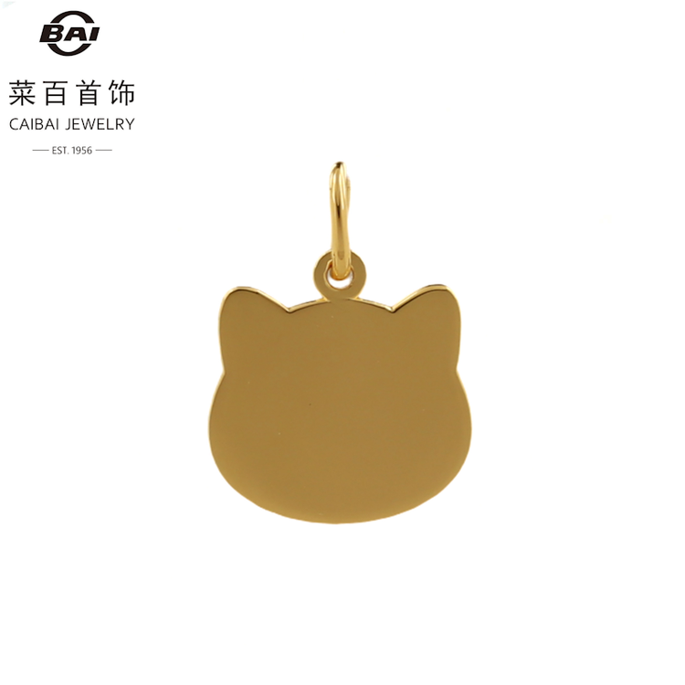 菜百首饰 黄金项坠 足金光面猫咪工艺项坠
