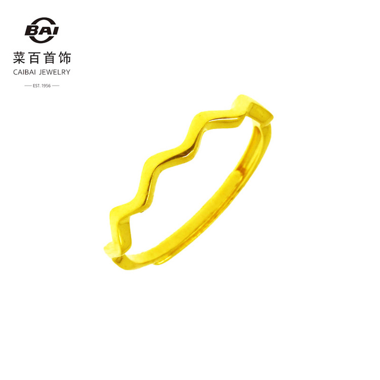 菜百首饰 黄金戒指足金素圈波浪纹精品戒指