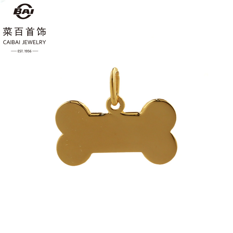 菜百首饰 黄金项坠 足金光面小狗骨头项坠