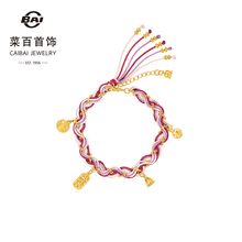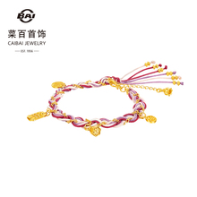菜百首饰古法黄金五彩编织流苏挂坠手链女新款足金新中式盘缠手链