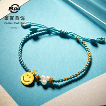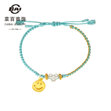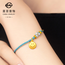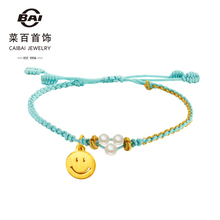 菜百首饰黄金手链时尚潮流微笑脸珍珠足金编织手绳手链