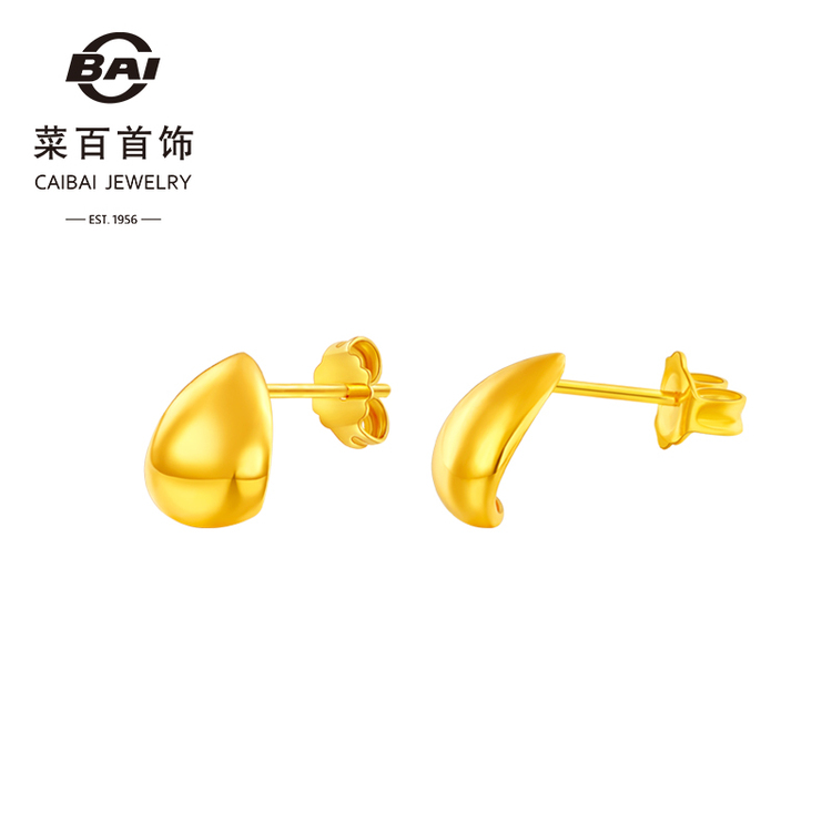 菜百首饰 黄金耳饰 足金工艺耳钉水滴造型 计价