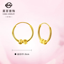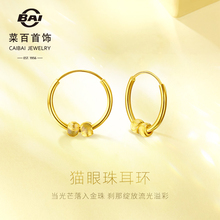 菜百5G闪耀金猫眼珠耳环女新款足金小金珠耳饰耳坠