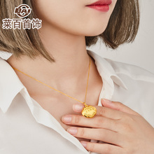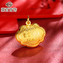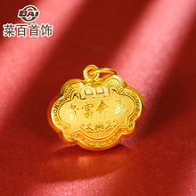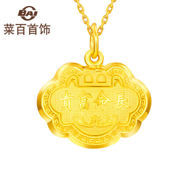 菜百首饰黄金吊坠“长命富贵”吉祥金锁项坠足金福锁吊坠