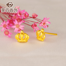 菜百首饰黄金耳钉足金镂空花丝皇冠金耳钉女款黄金耳饰