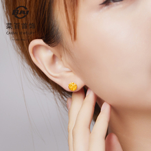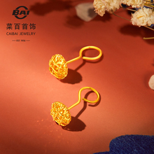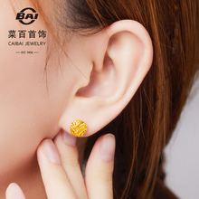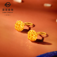 菜百首饰 黄金耳钉 新款潮流耳饰闪耀金花丝缠绕直针款