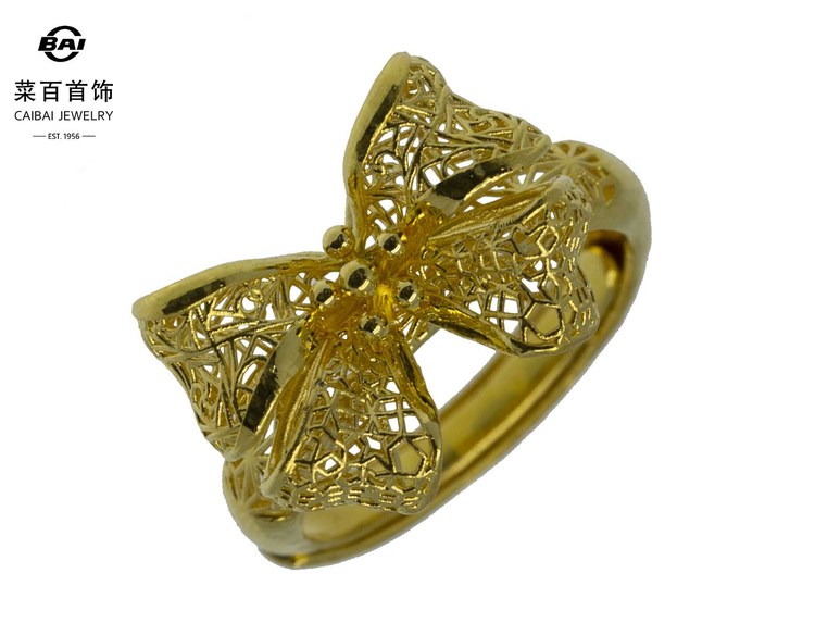 菜百首饰 黄金戒指 硬足金工艺 镂空蝴蝶结造型戒指 计价