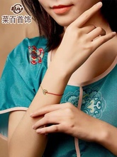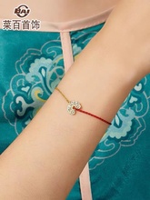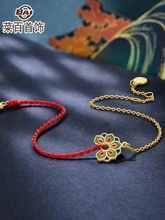 菜百首饰 宝相花系列手链古法黄金足金莲花红绳手链