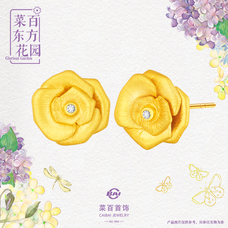 黄金饰品 > 黄金耳饰 > 耳钉 > 菜百首饰 > 菜百首饰 足金钻石饰品 东方花园