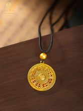 菜百首饰 黄金项坠 足金古法工艺八宝罗盘造型坠