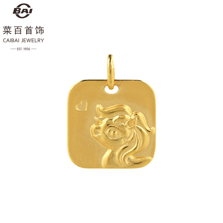 菜百首饰 足金项坠 马造型 牌