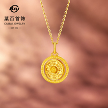 菜百首饰足金吊坠国潮风八宝罗盘吊坠足金镂空圆牌金坠子送礼物