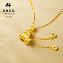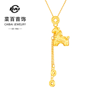 菜百足金项链国风闪耀金“马上有钱”黄金项链时尚生肖马流苏链牌