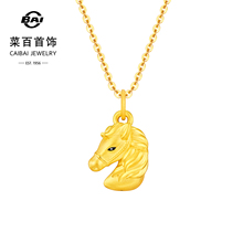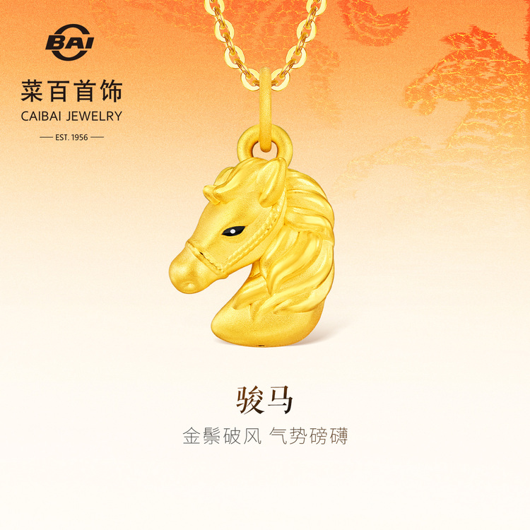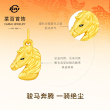 菜百首饰足金吊坠国风生肖马鎏彩黄金吊坠时尚骏马足金项坠送礼物