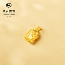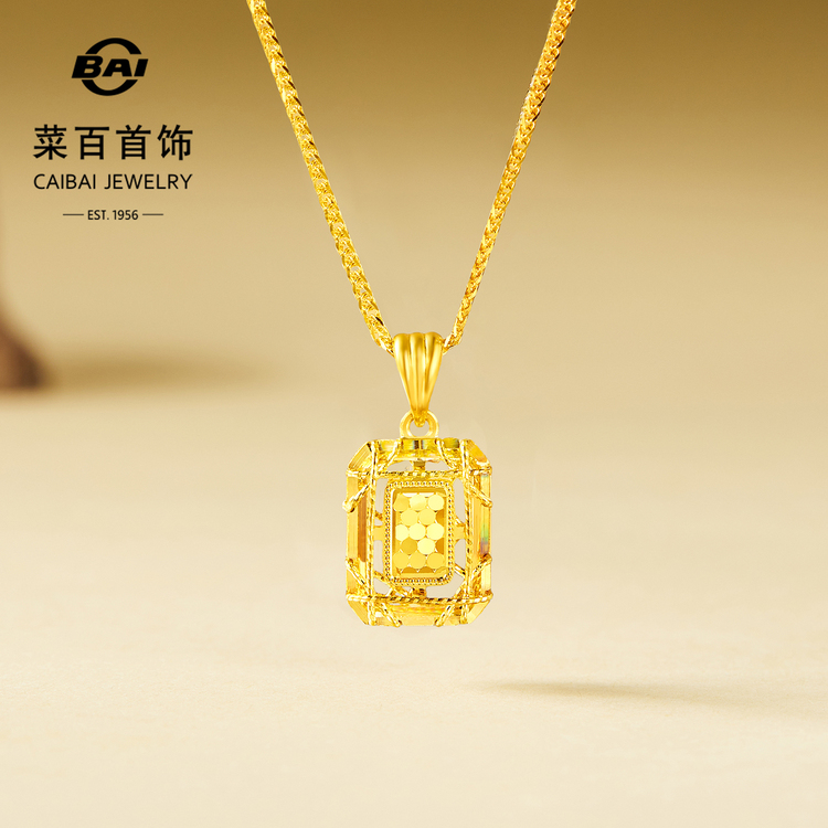 菜百首饰足金吊坠时尚炫彩金方形吊坠爆闪鱼鳞亮片花丝项坠女送礼
