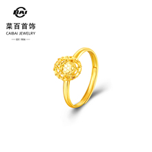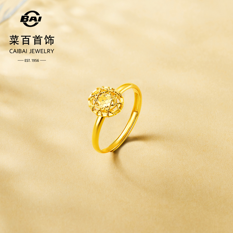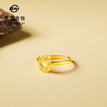 菜百首饰足金戒指时尚炫彩金鸽子蛋活圈戒指璀璨花丝鸽子蛋戒指女