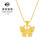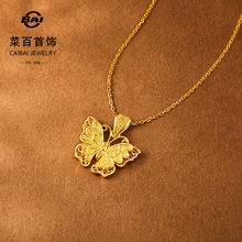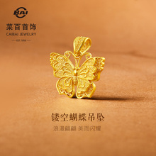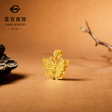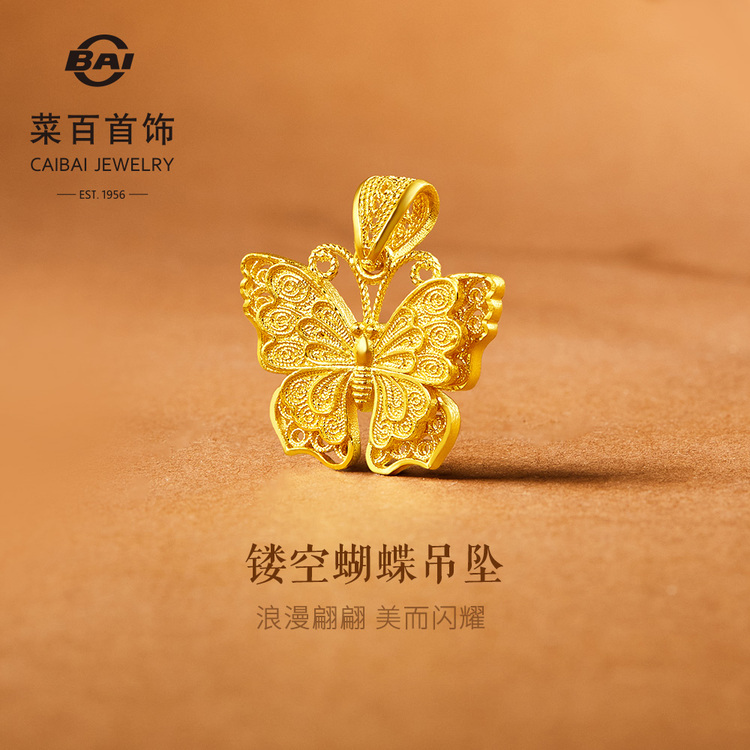 菜百首饰足金吊坠时尚花丝设计双翅蝴蝶吊坠国风镂空蝴蝶项坠女