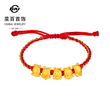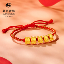 菜百首饰足金手链国潮风微硬金五福马编织红绳手链生肖马手链送礼