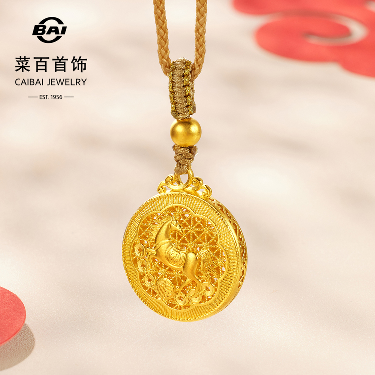 新年礼菜百首饰足金项链古法黄金马上有钱生肖马编织项链国风项链