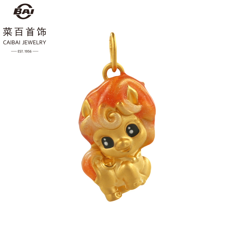 菜百首饰 足金项坠5D鎏彩-小马多多系列-多财