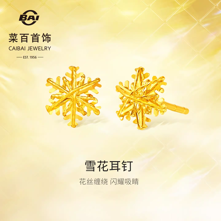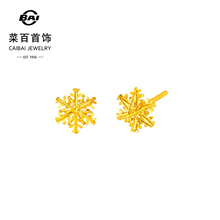 菜百首饰足金耳饰时尚闪耀金花丝缠绕雪花耳钉爆闪叠搭耳饰女送礼