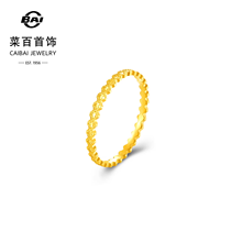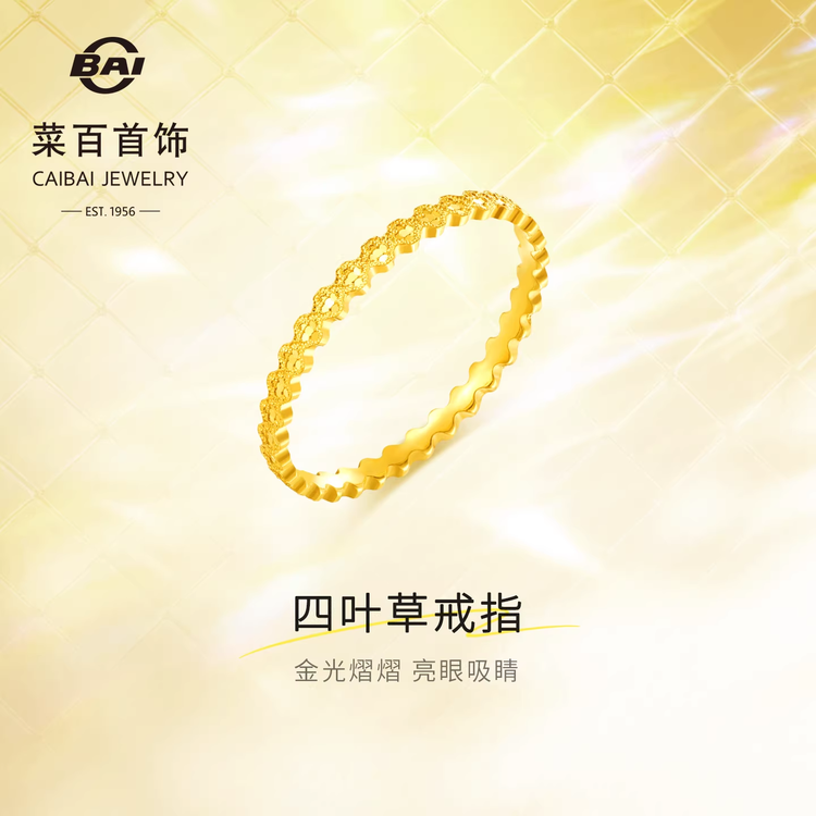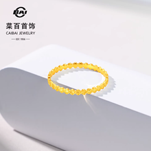 菜百首饰足金戒指时尚闪耀金蜂巢四叶草细戒指爆闪叠搭戒指送礼