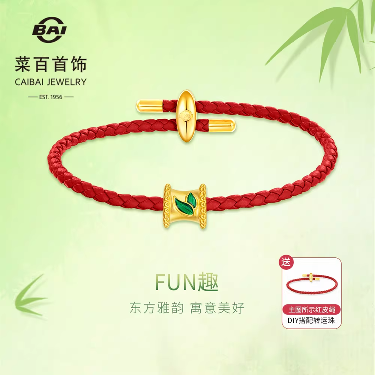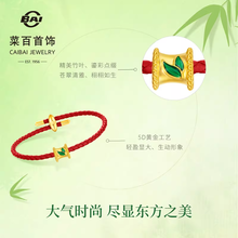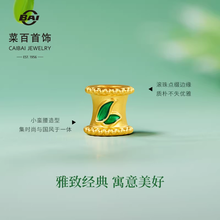 菜百FUN趣系列黄金小蛮腰转运珠足金鎏彩竹叶串珠DIY隔珠送皮绳