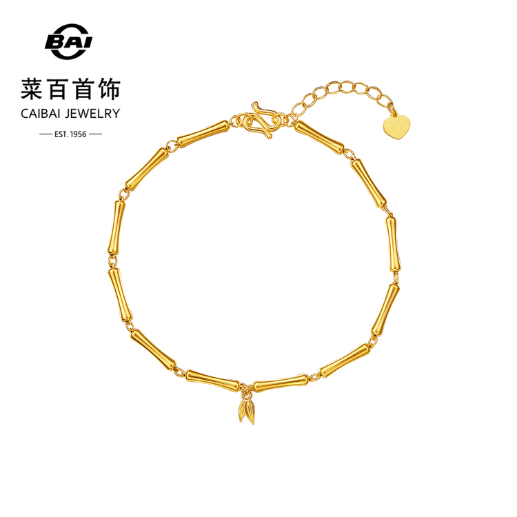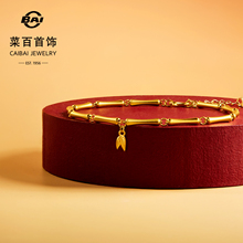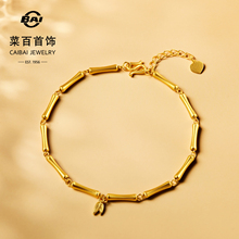 菜百首饰足金手链古法黄金竹节手链国风叠搭竹节细手链节日礼物