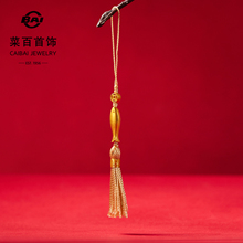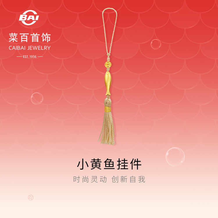菜百首饰古法黄金小黄鱼金钱手机挂件国风小金鱼小配饰送礼