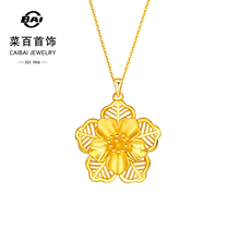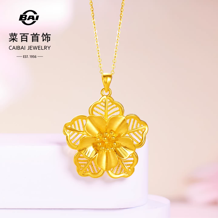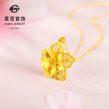 菜百首饰足金吊坠时尚雅致五瓣花镂空双层花型吊坠项坠送礼女
