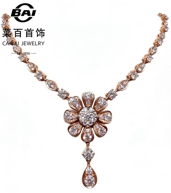 菜百首饰 18K金钻石项链—向阳之花