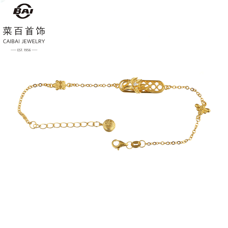 菜百首饰 黄金手链 足金古法镶钻工艺 家和祥瑞系列兰心蝶意手链