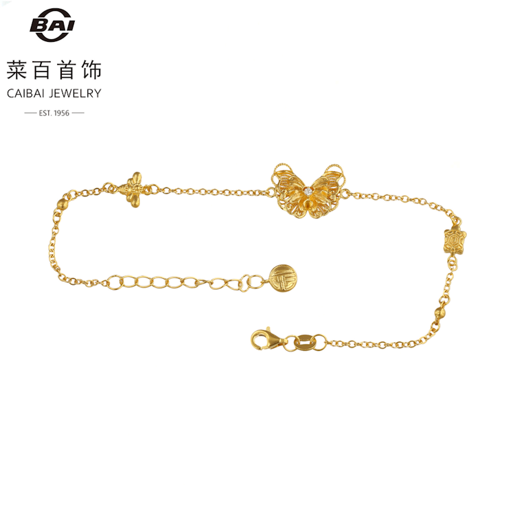 菜百首饰 黄金手链 足金古法镶钻工艺家和祥瑞系列兰蝶同心手链