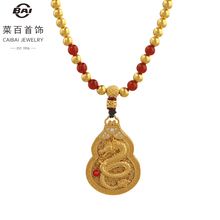 菜百首饰 黄金项链 足金古法镶石工艺家和祥瑞系列福禄龙链牌